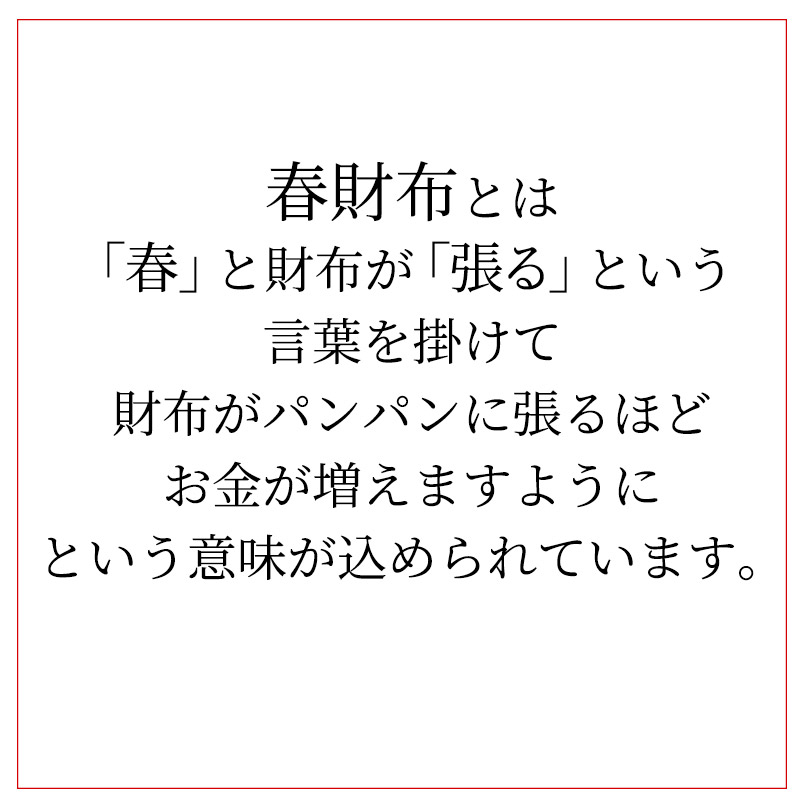 新芽が芽吹きふくらむ季節であることから、財布もお金で膨らみますようにと願いも込められています。 2026年丙午(ひのえうま)の年は「火の年」とも言われ、開運色は情熱と飛躍を上げてくれる赤色がラッキーカラーのひとつです。新作や使う方に寄り添った様々な色やデザイン等ご案内させていただきたく、まずは紳士雑貨売場にてお待ちしております。