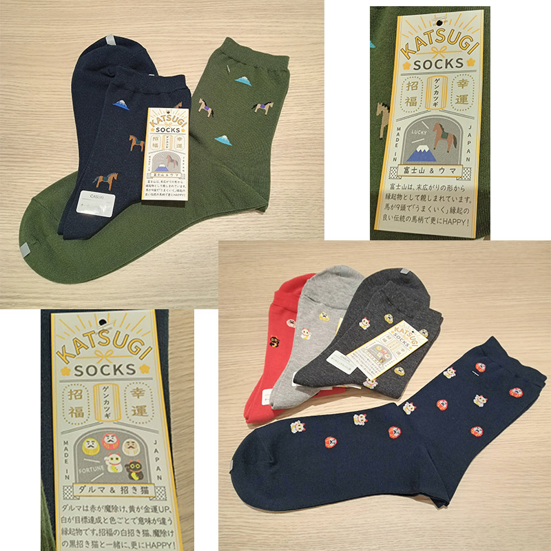 2026年もポジティブに一日一日を大切に過ごすという願いを込めて、ご家族様や親しい仲間たちへのプレゼントにおすすめのシリーズです。 また、ご自身への験担ぎとエールを送って愛用して頂くのも素敵だと思います。 商品名は『験を担ぐ』の担ぐから『KATSUGI Socks』と名づけられております。縁起の良いことわざやラッキーモチーフを靴下で運気もアップしましょう! 商品名:KATSUGI Socks 種類:富士山&ウマ、ダルマ&招き猫、富士山&ツバメ 素材 :綿×ポリエステル×ナイロン×ポリウレタン サイズ:25~27cm 価格 : 税込1,650円