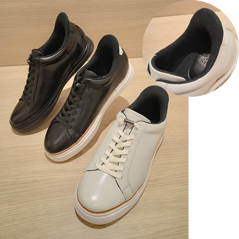 こちらのカジュアルスニーカーは、靴ベラのようなかかとで、立ったままでも座ったままでも手を使わずにスッと履ける画期的なシューズです。また、紐部分はゴム使用で縛る必要もなく、歩行時の衝撃を和らげる設計で足の疲れを軽減し快適性を重視しています。 カジュアルなシーンでスタイリングしやすくラクを追求したスニーカーです。 商品名:BEE CLASSIC/cB6050 素材 :羊革 サイズ:BLA・WHT・BLAWHT 価格 : 税込13,200円