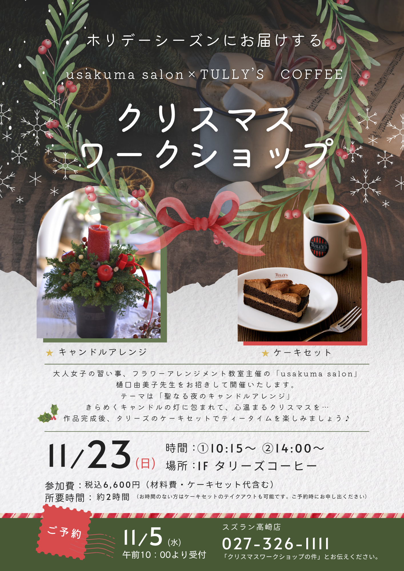 スズラン高崎店 027-326-1111(クリスマスワークショップの予約とお伝えください)