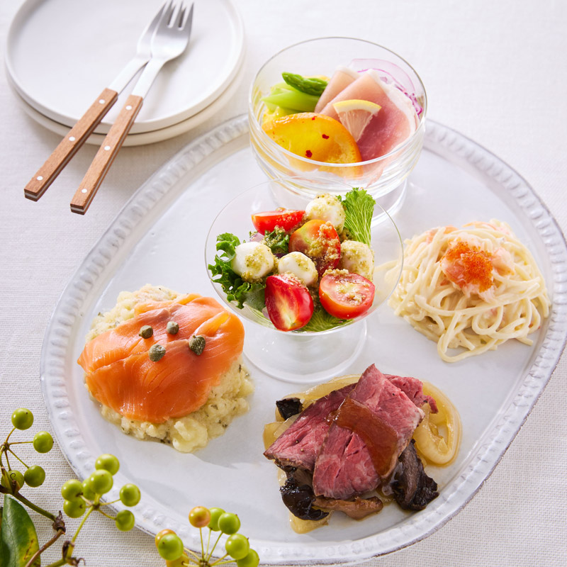 人気のローストビーフやサーモントラウトを使ったサラダを詰め合わせました。