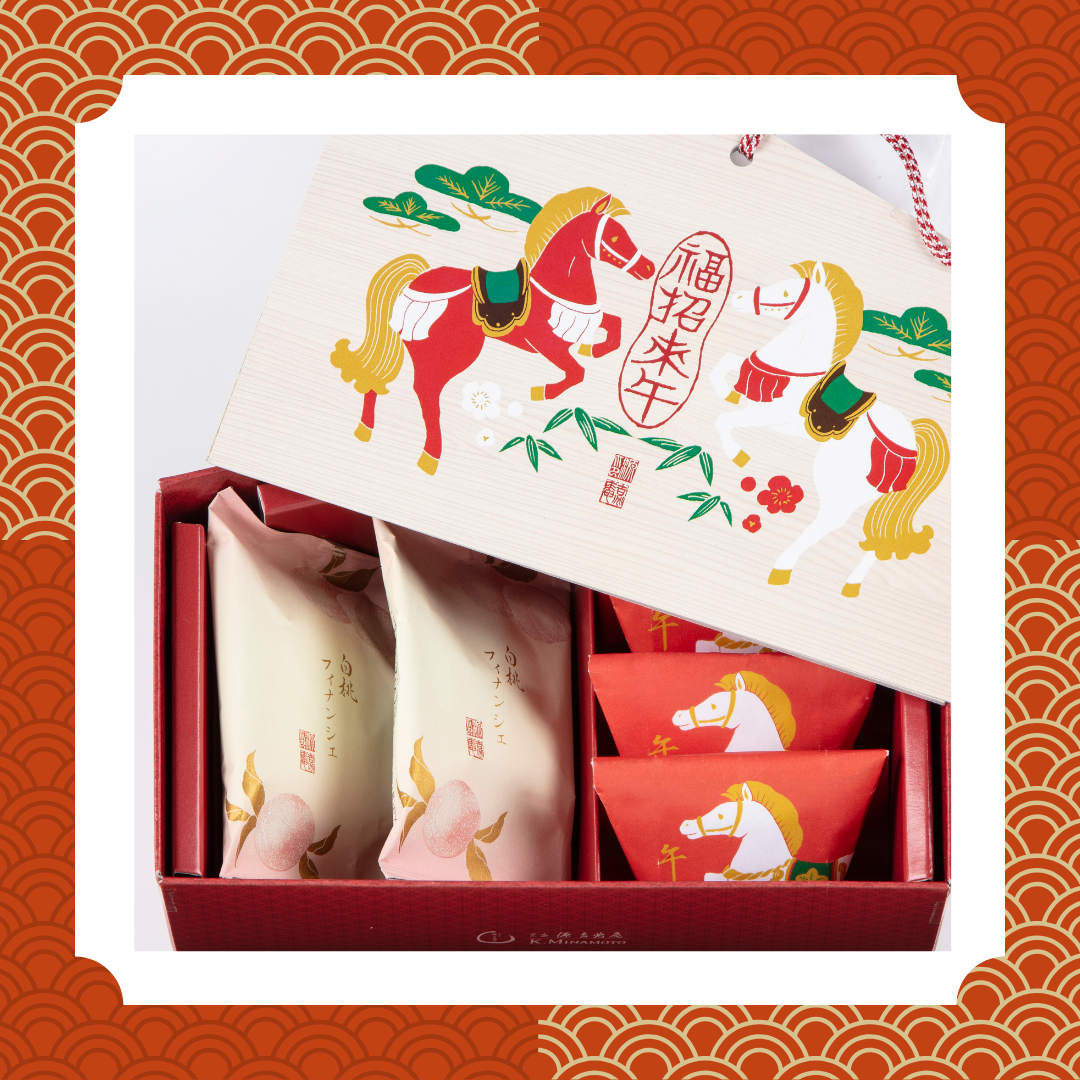 絵馬招福来 白桃フィナンシェ×2、干支羊羹×3 1箱 税込1,296円